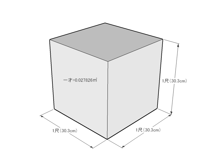 - 1切(さい):1尺×1尺×1尺の立方体。約0.0278立方メートル(約27.8リットル)。
