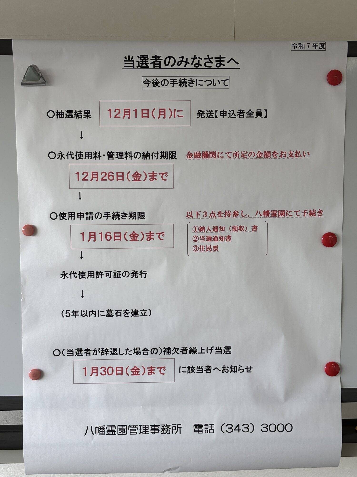 高崎市八幡霊園使用者募集当選者への案内ポスター
