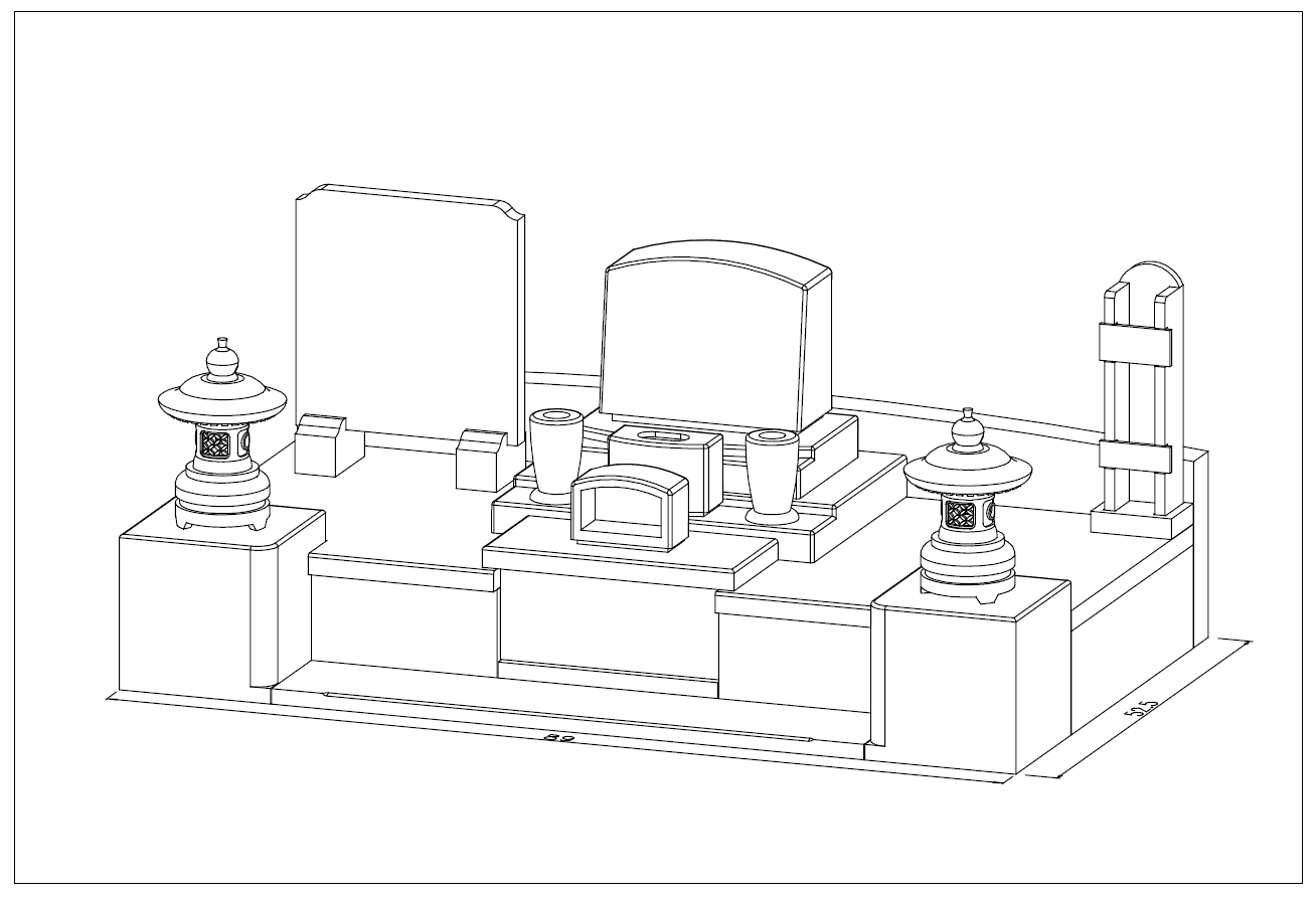 | 敷地面積 3.85m2(幅6尺奥行7尺) | 寺院墓地 | 石種 石塔 リリー 外柵 G603 |
