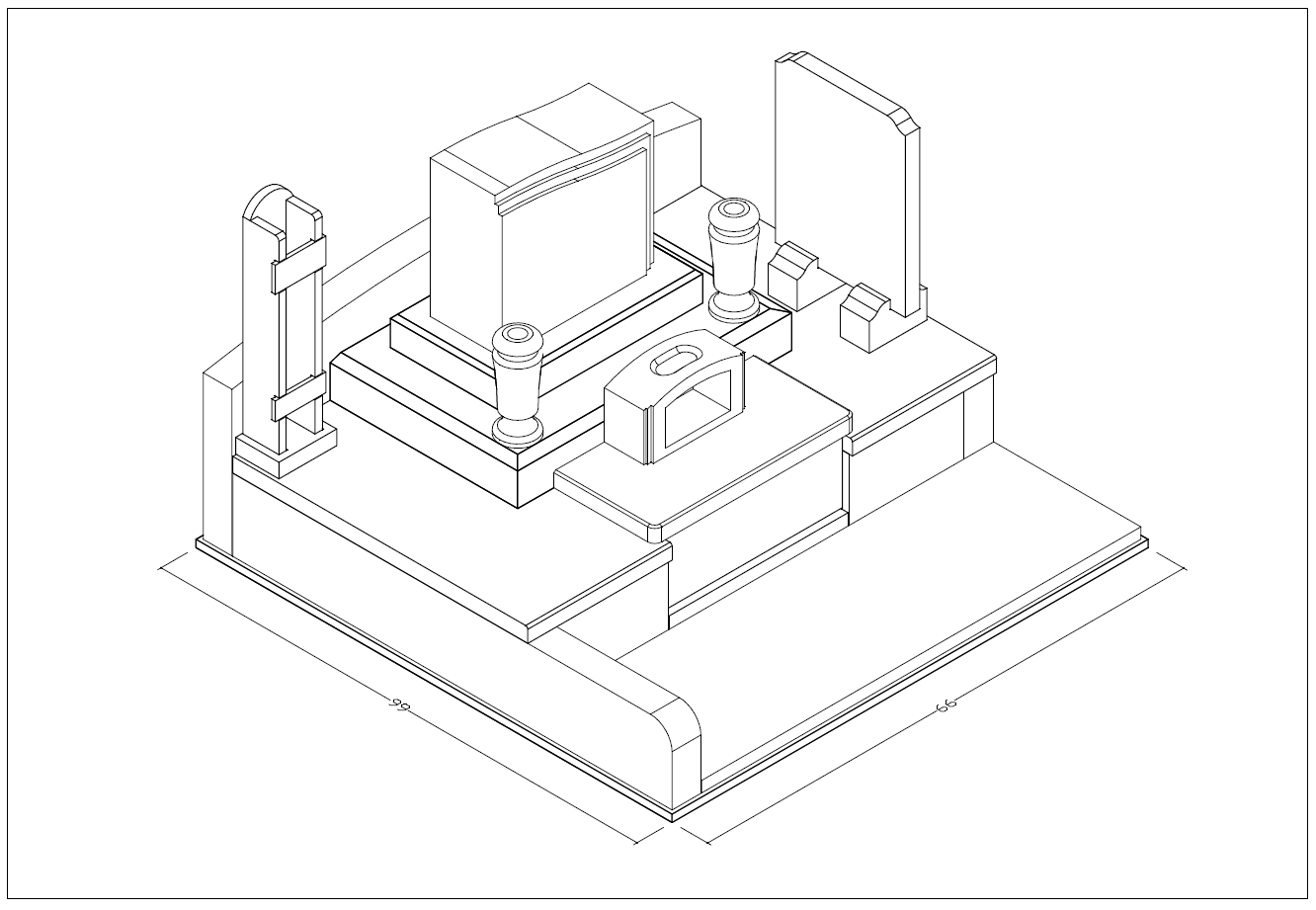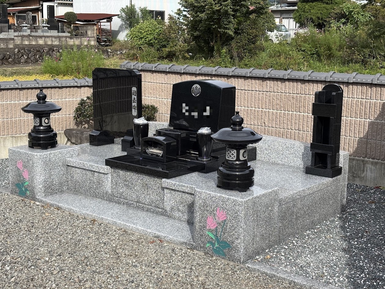 | 敷地面積m2〈幅2.7m(8.9尺)×奥行1.6m(5.25尺)〉 | 個人墓地 | 石種 石塔インドMU(黒系) 外柵 湖南623(白系) |